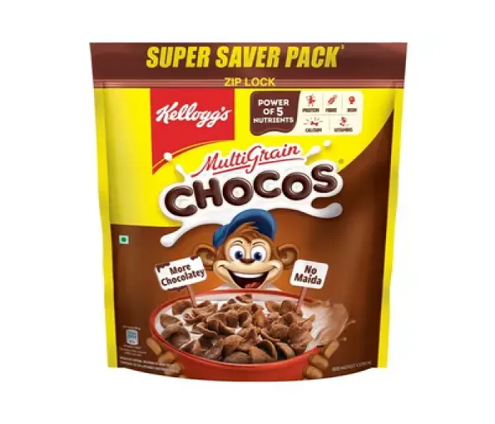Kellogg's Chocos is a nourishing & solid breakfast for kids. It makes milk chocolaty & delicious. • Kellogg's Chocos has the goodness of whole wheat. Each serving of 30g Kellogg's Chocos has Protein and Fibre equal to that of 1 wheat roti of 30g. • Kellogg's Chocos is high in Calcium & Protein that is essential for your child's growing body. • It is enriched with10 essential vitamins & minerals like Iron, Zinc, B Vitamins & Vitamin C for your active kids. • 30g Kellogg's Chocos + 200ml cow's milk provides 66% of the day's Recommended Dietary Allowances (RDA) for Calcium and 32% of the day's RDA for Protein. • ** 1 bowl equals 30g of Kellogg's Chocos . *30g of Kellogg's Chocos has protein and fibre equal to that of 1 wheat roti of 30g